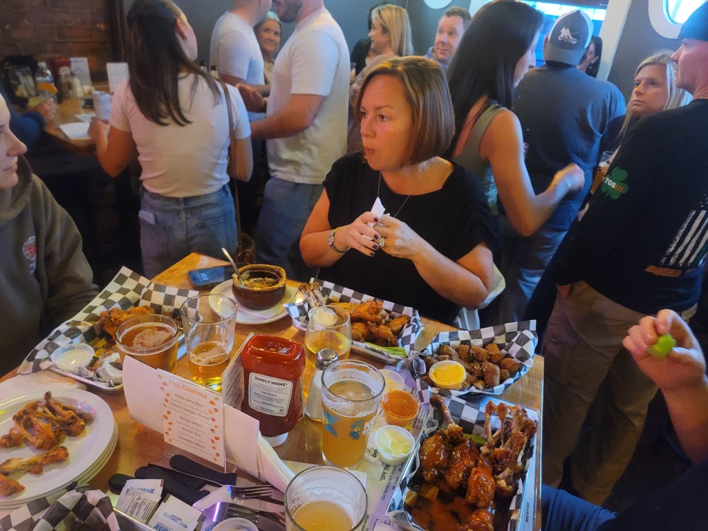 While we only scored thier “hot” wings, we tried four different sauces – The Hot, Hot & Honey, Garlic Hot, and Honey Garlic Hot. Each of us said our flavor was the best. The Old Rail scored highest on wing size, texture and doneness. All the varieties were cooked very well–with different sauces added at the end. The Hot could have used a little more heat and a little less pepper, which is a prevalent aftertaste with this selection. However, the group said these are some of the best wings that we have had.